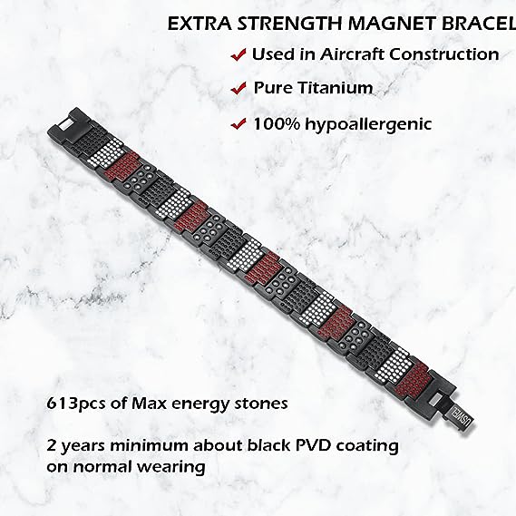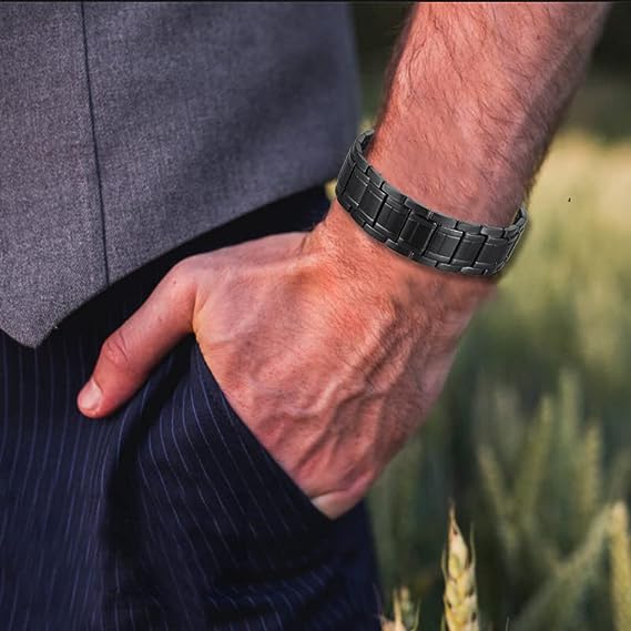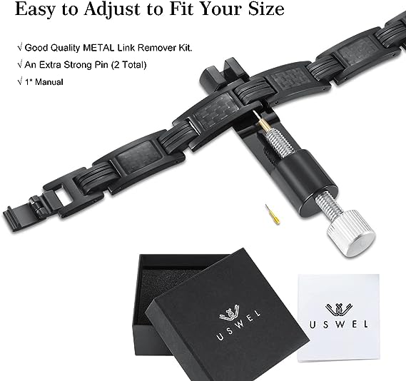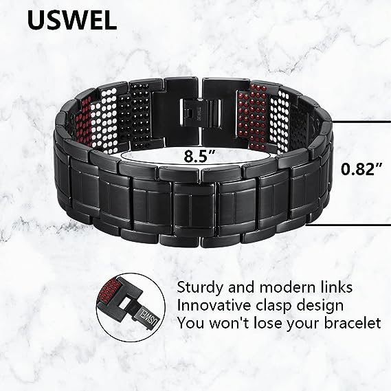 USWEL Max Energy Bracelet for Men, Pain Relieving for Carpal Tunnel and Arthritis, Balance Wrist Band for Blood Pressure and Fatigue,Adjustable Bracelet Length with Sizing Tool for Perfect Fit--UJ001 Black