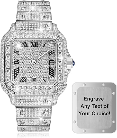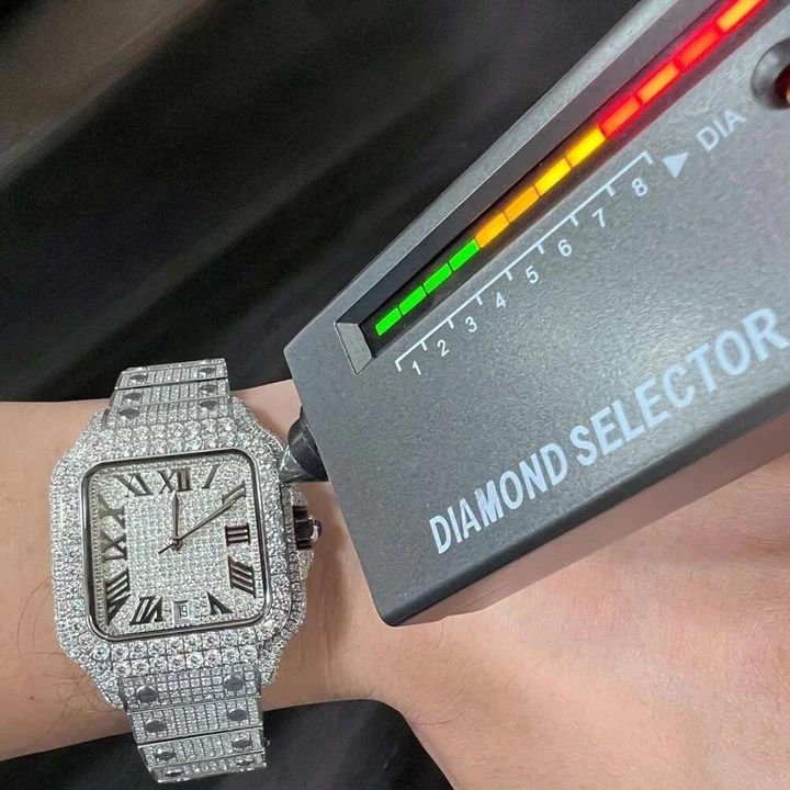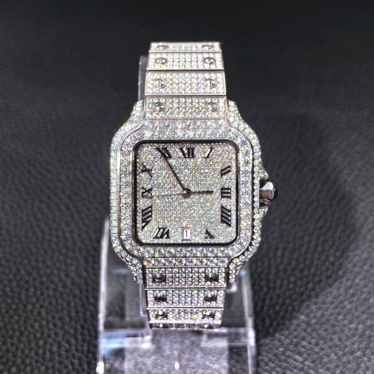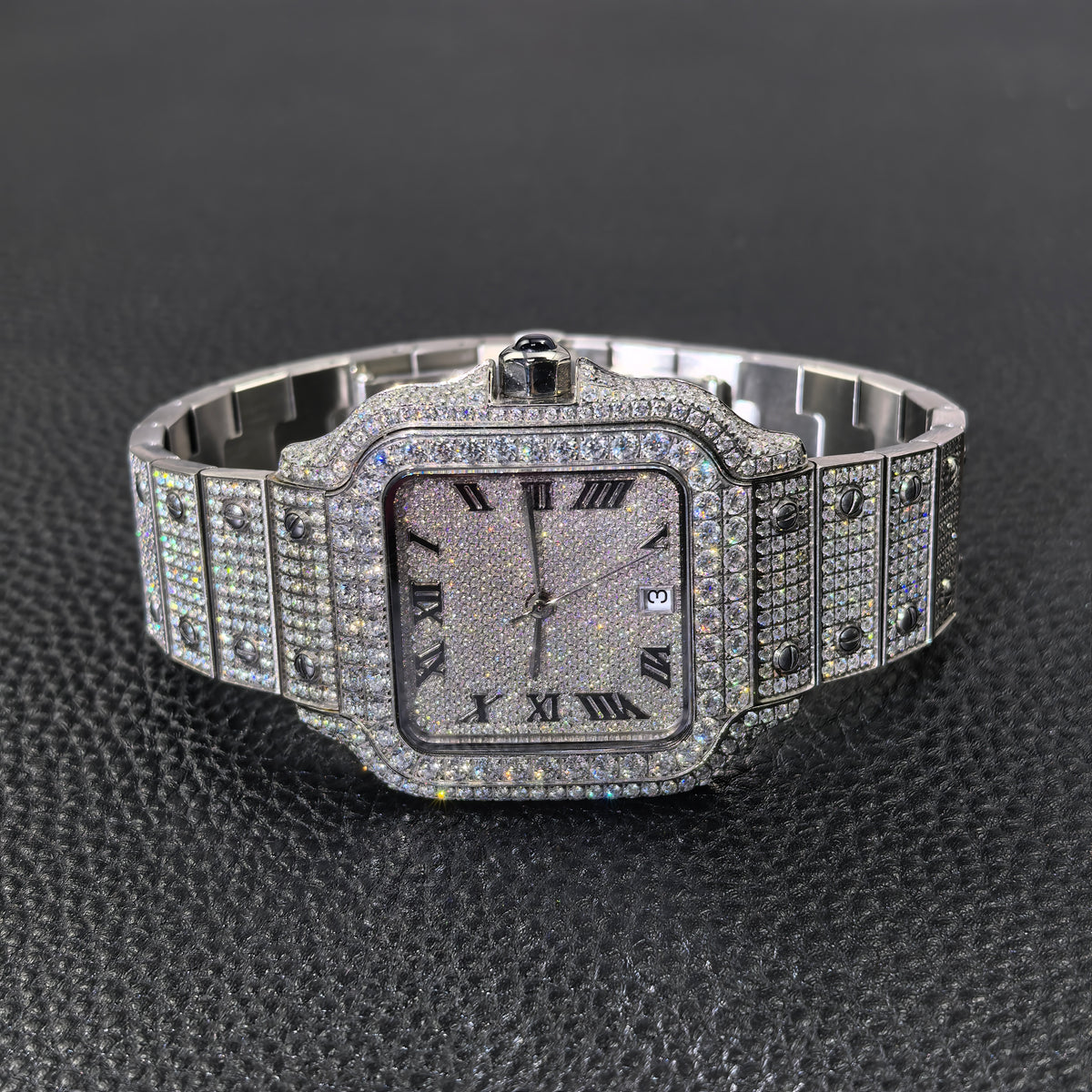 USWEL VVS Moissanite Personalized Watch with Black Roma Number