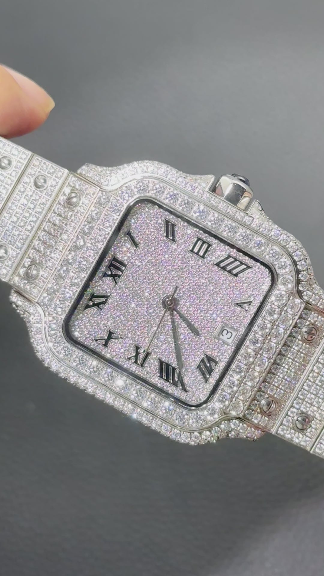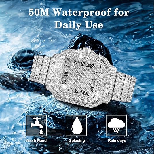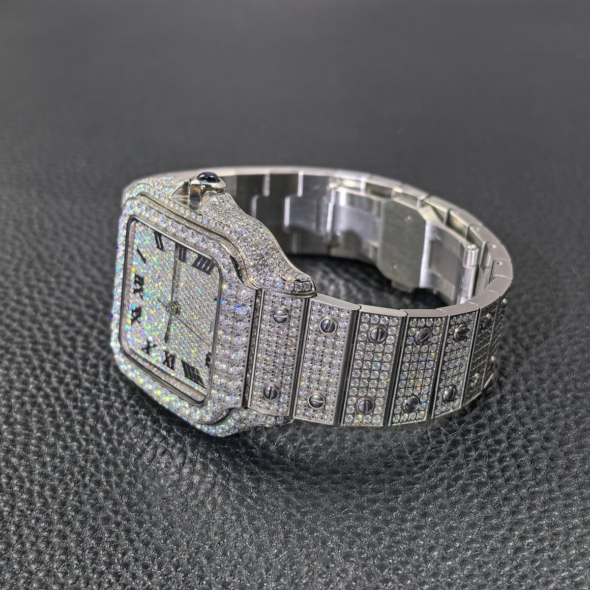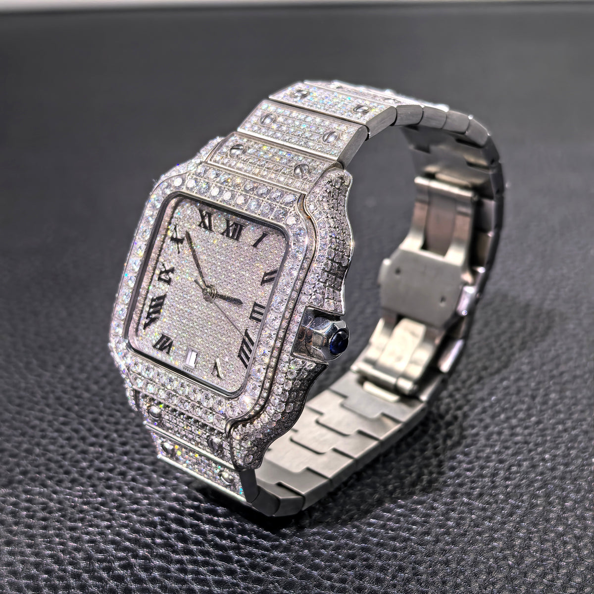 USWEL VVS Moissanite Personalized Watch with Black Roma Number