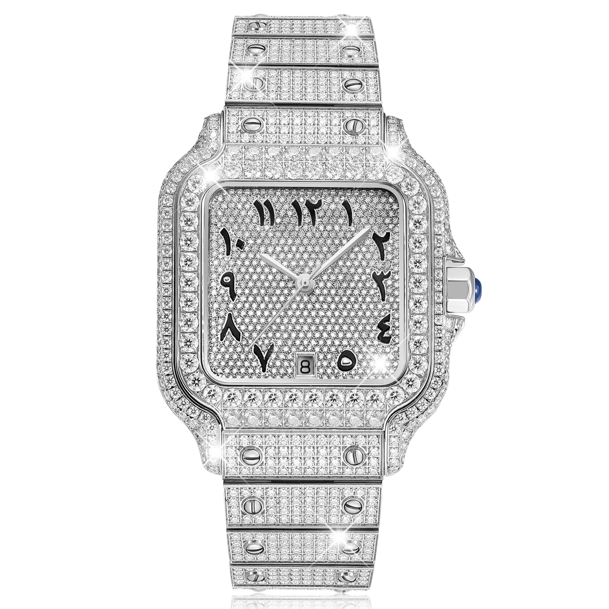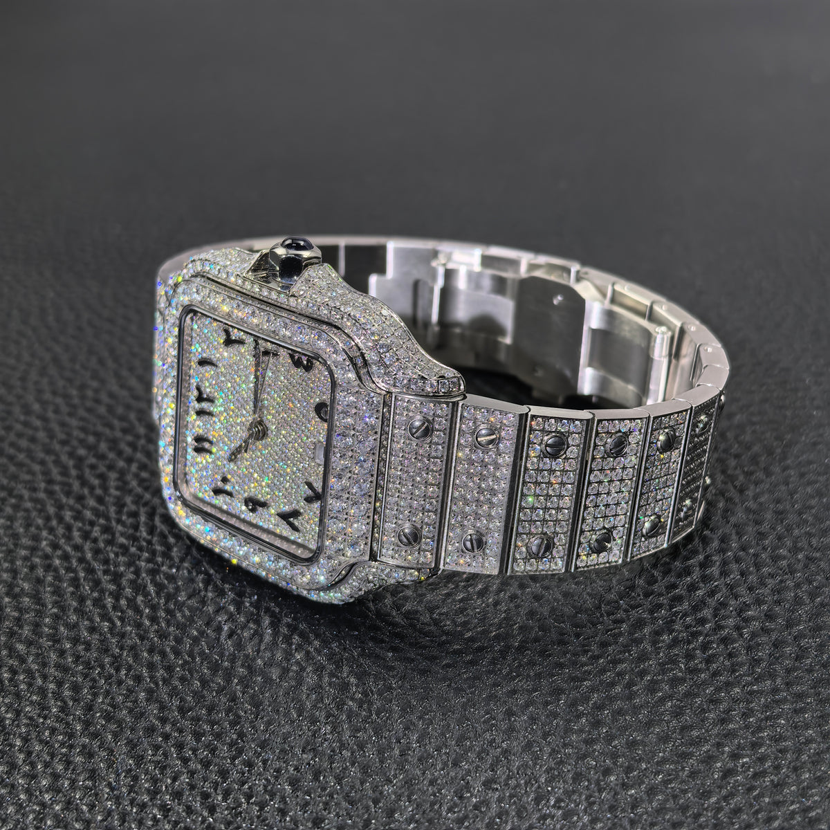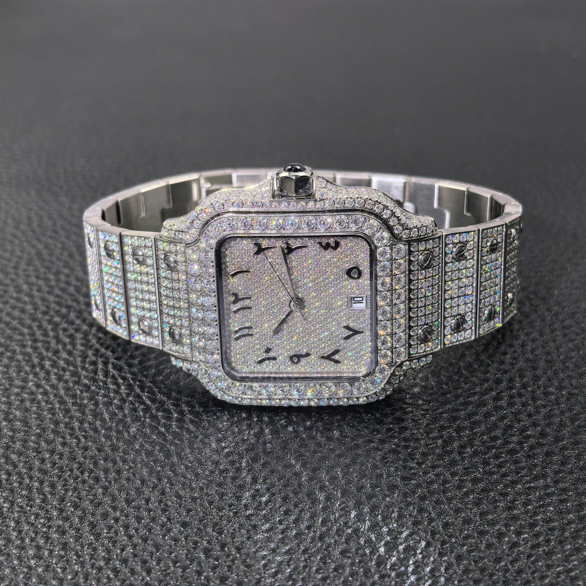 USWEL Personalized Moissanite Watch with Black Arabic Numbers