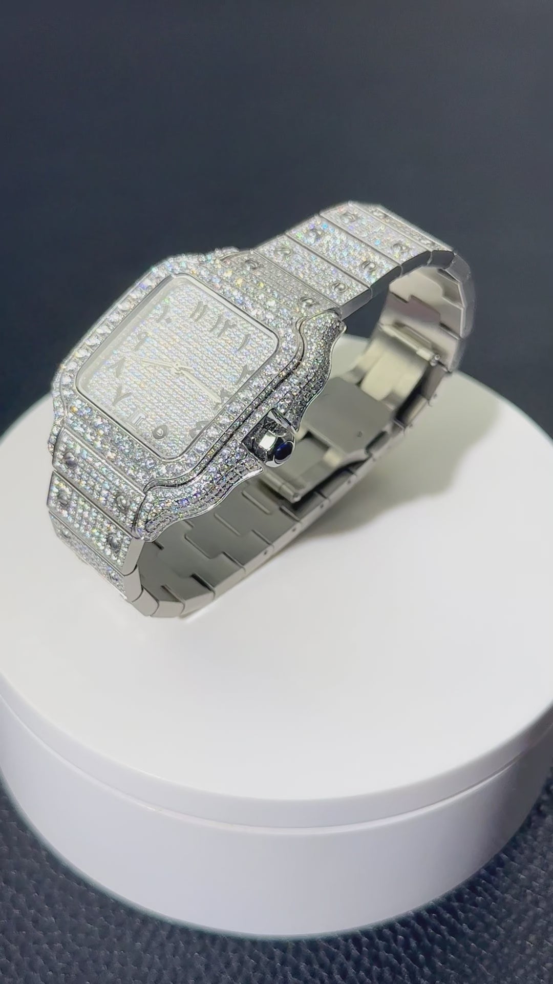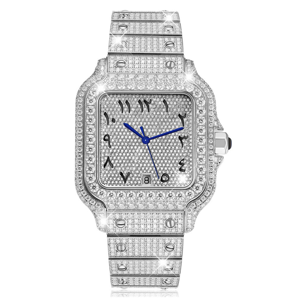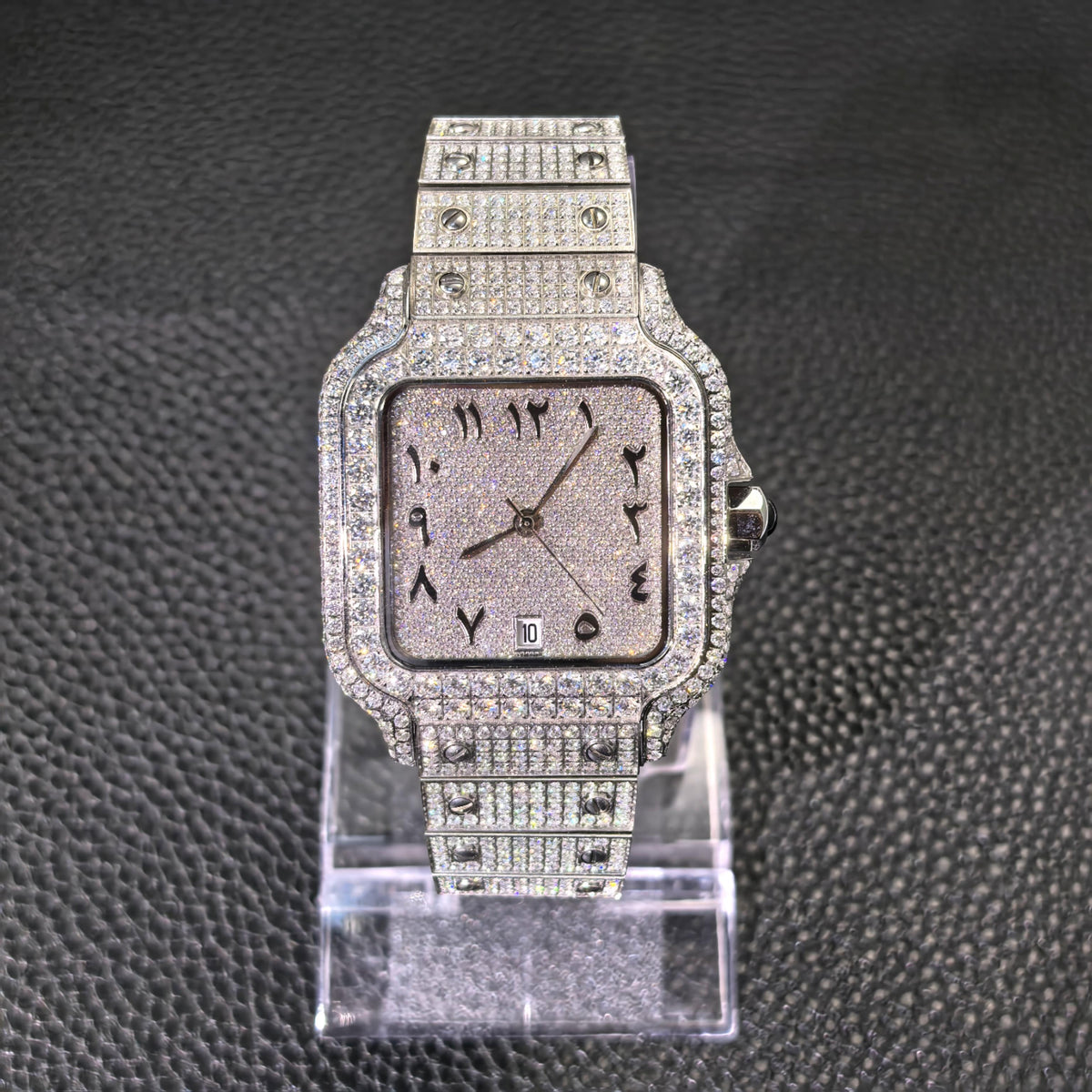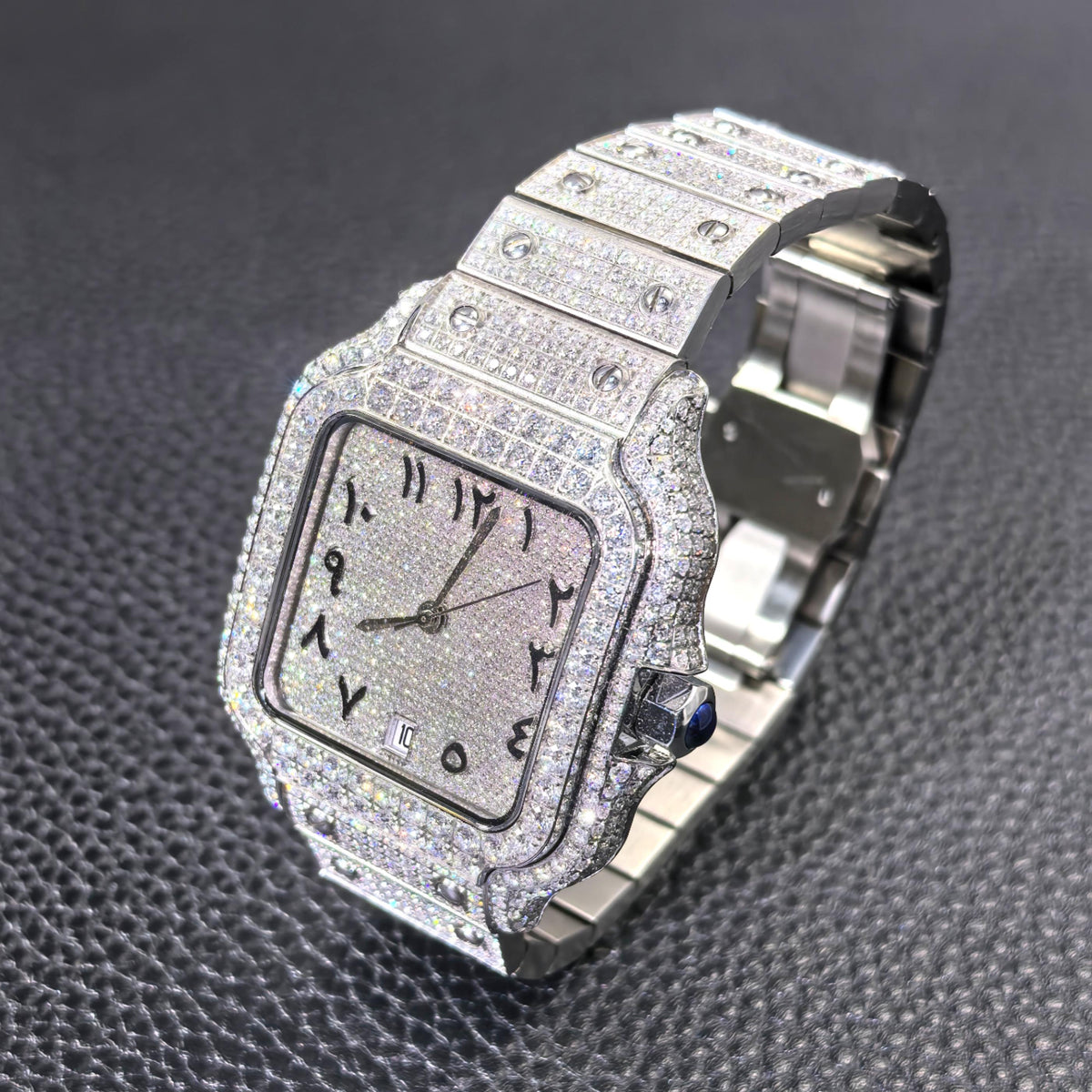 USWEL Personalized Moissanite Watch with Black Arabic Numbers