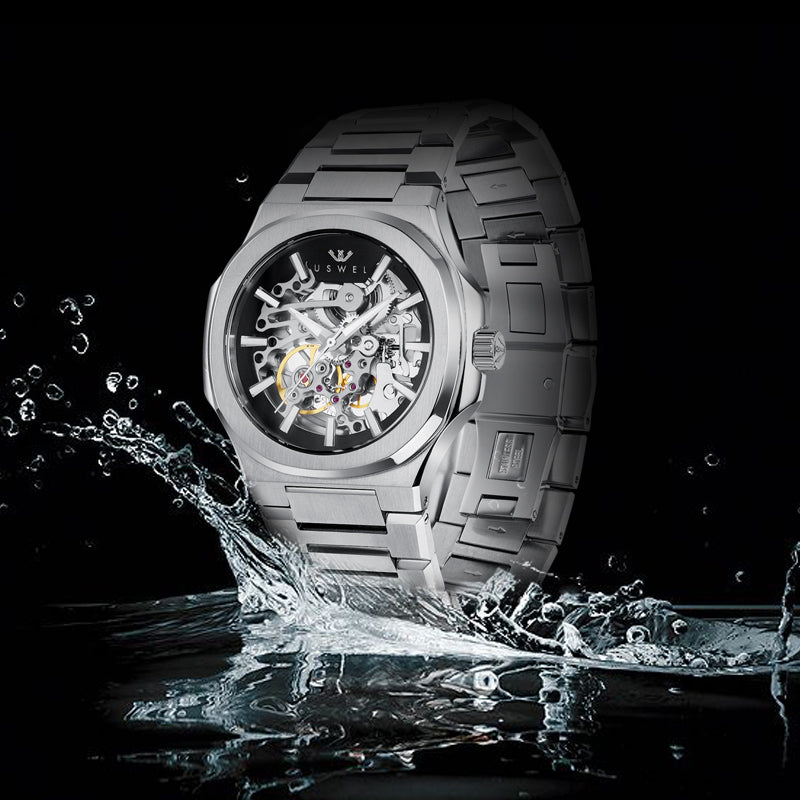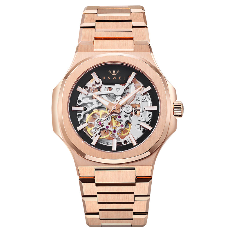 USWEL Skeleton Automatic Self Winding Mens Watch-Silver-41MM-U005